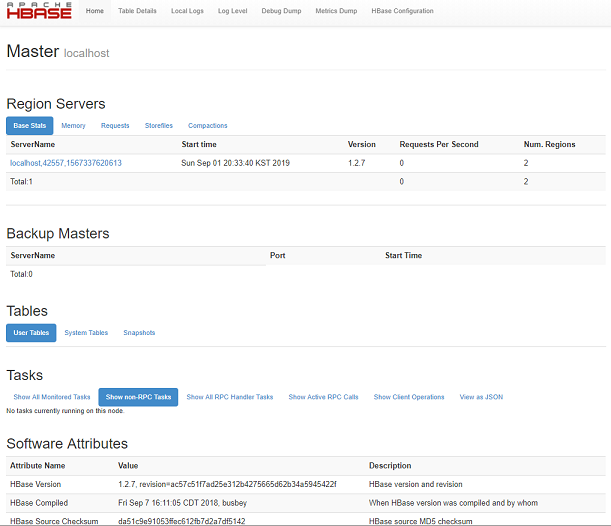 1.2+ 버전은 jdk 8 : http://hbase.apache.org/book.html#java