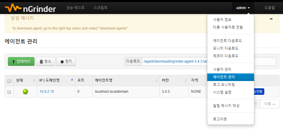 - agent 확인 (http://192.168.56.101:8080/agent/)